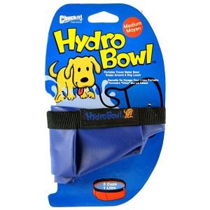 Canine Hardware Hydro Bowl Medium, 5 Cup (Colors Vary) The versatile Hydro Bowl is waterproof, durable, and snaps closed into a compact triangle for easy storage. Snap it around a leash, backpack, bicycle, or a variety of other places for easy transport. The Hydro Bowl provides a convenient means of hydration for your dog.